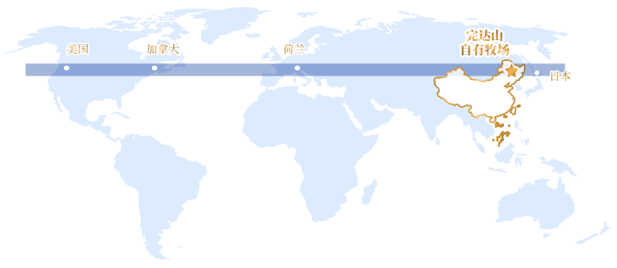 完达山乳业自有奶源基地位于北纬42°-47°,与荷兰、丹麦、美国北部各州及日本的北海道等国家和地区, 同处在“世界黄金奶源带”上。是举世公认的优质奶牛养殖基地,素有“龙江沃土,黄金奶仓”美誉。